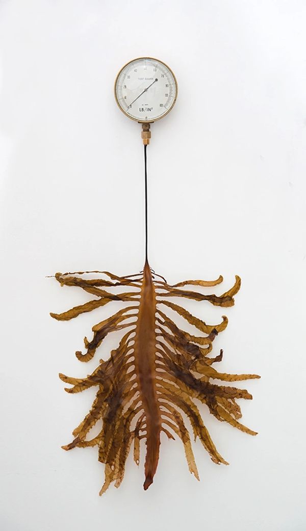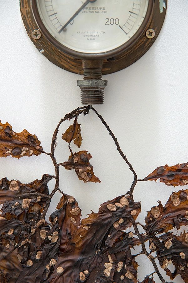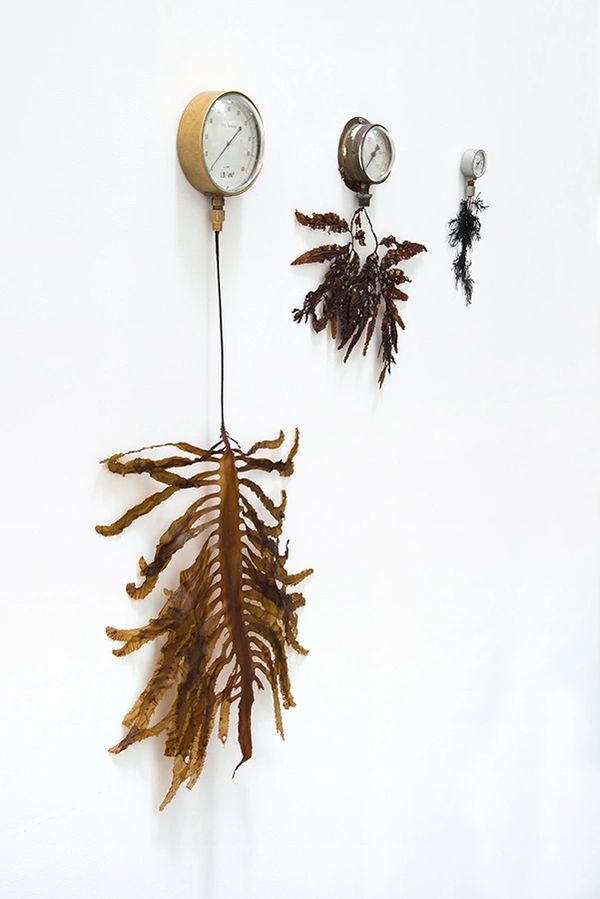 Here Bethany Wheeler uses natural forms to create a visual metaphor for the pressures that we are putting on the environment. She contrasts her poetic metaphor with a direct quote from Tim Flanery:“If seaweed farms covered 9% of the ocean they could produce enough biomethane to replace all of today’s needs in fossil fuel energy, while removing 53 gigatonnes of CO2 (about the same as all current human emissions) per year from the atmosphere. It could also increase sustainable fish production to provide 200kg per year, per person, for 10 billion people. Additional benefits include reduction in ocean acidification and increased ocean primary productivity and biodiversity. Many of the technologies required to achieve